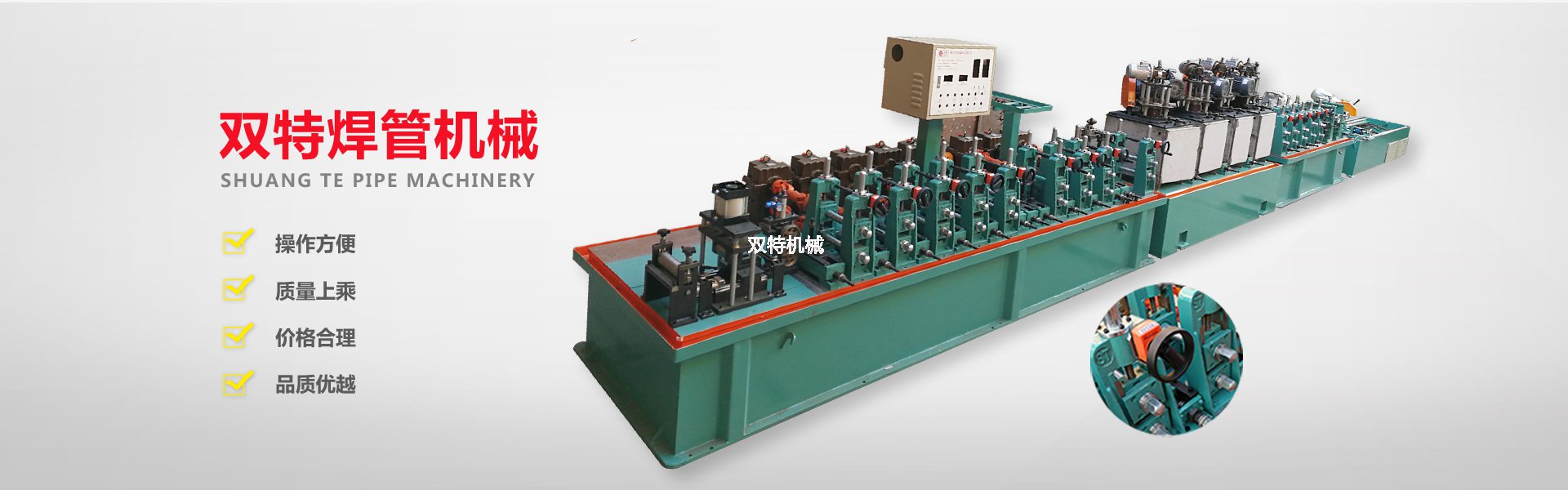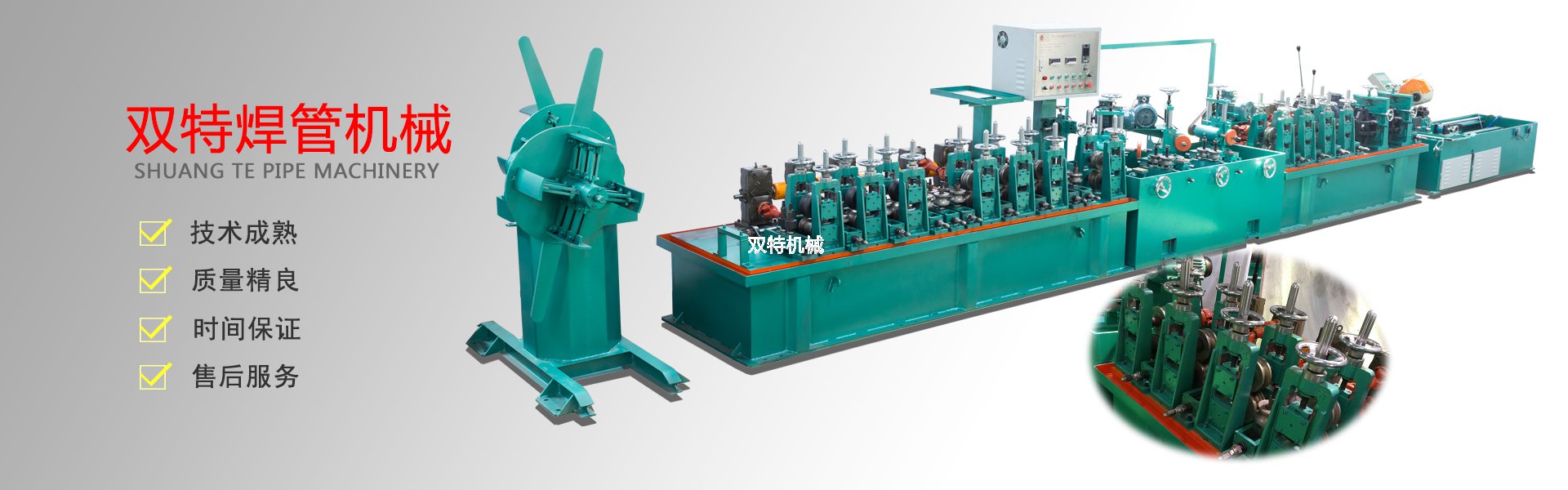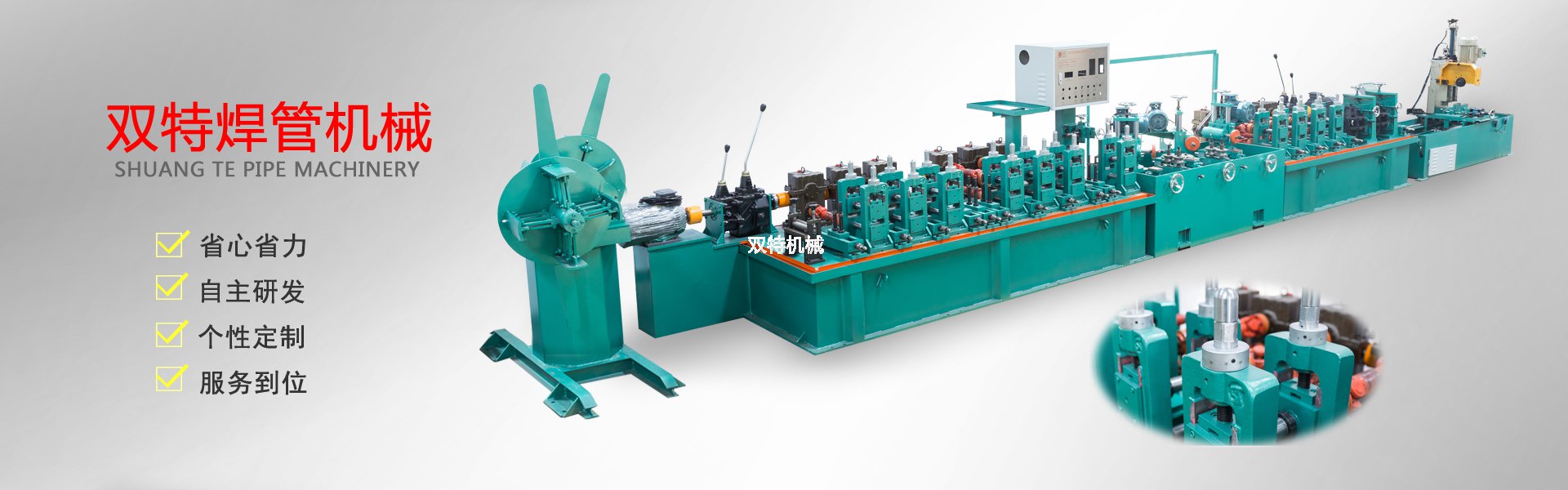佛山市雙特機(jī)械科技有限公司是一家不銹鋼制管機(jī)生產(chǎn)廠(chǎng)家、公司產(chǎn)品有:不銹鋼飲用水管制管機(jī)、不銹鋼制品管制管機(jī)、高頻焊管機(jī)、不銹鋼拋光機(jī)、在線(xiàn)光亮固溶退火設(shè)備、不銹鋼焊管機(jī)內(nèi)外在線(xiàn)整平裝置、復(fù)合管機(jī)及其它配套設(shè)備。本公司奉行“以技取勝、精益求精”的企業(yè)理念,以“科學(xué)、嚴(yán)謹(jǐn)、創(chuàng)新”的工作方式,開(kāi)拓進(jìn)取。以敏銳的市場(chǎng)觸覺(jué)探索業(yè)內(nèi)流行方向資訊,以市場(chǎng)需求為導(dǎo)向,以客戶(hù)為中心,用優(yōu)質(zhì)的產(chǎn)品,優(yōu)質(zhì)的服務(wù)為不銹鋼行業(yè)的發(fā)展和繁榮,做出更大的貢獻(xiàn),并熱忱歡迎社會(huì)各界人士加盟雙特,共創(chuàng)美好明天! 全文?>